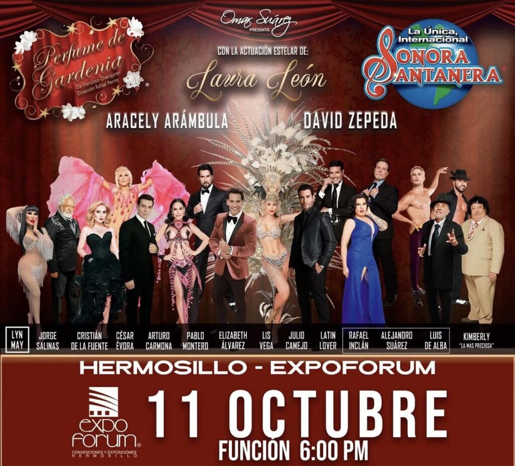 Aracely Arámbula encabeza el musical que ha conquistado México. Perfume de Gardenia llega a Hermosillo con una historia llena de amor prohibido, traición y sueños que arden sobre el escenario.