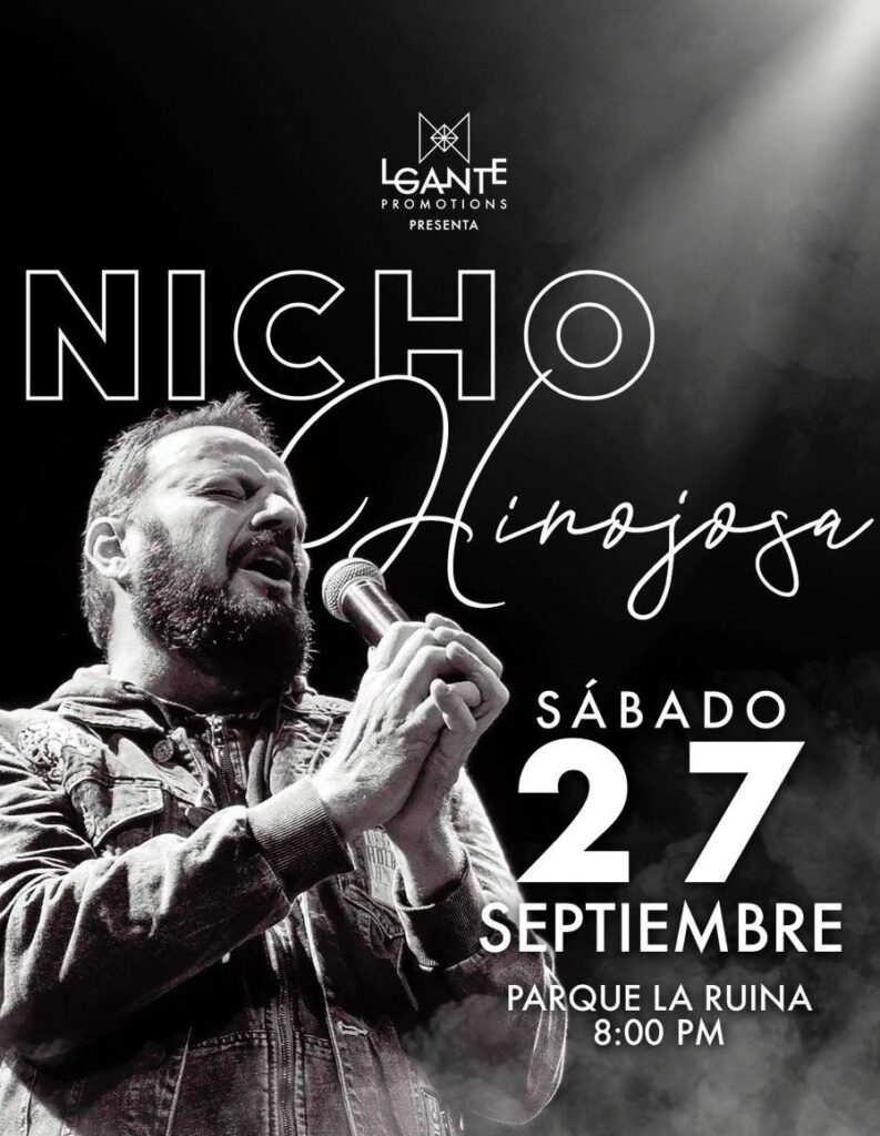 Nicho Hinojosa en Hermosillo ¡LLEGA A HERMOSILLO EL LEGENDARIO NICHO HINOJOSA! Prepárate para una noche inolvidable con su inconfundible estilo en: “La Bohemia Descarada” – un concierto íntimo, envolvente y 360° que te pondrá la piel chinita. Este próximo 27 de septiembre, Parque La Ruina.